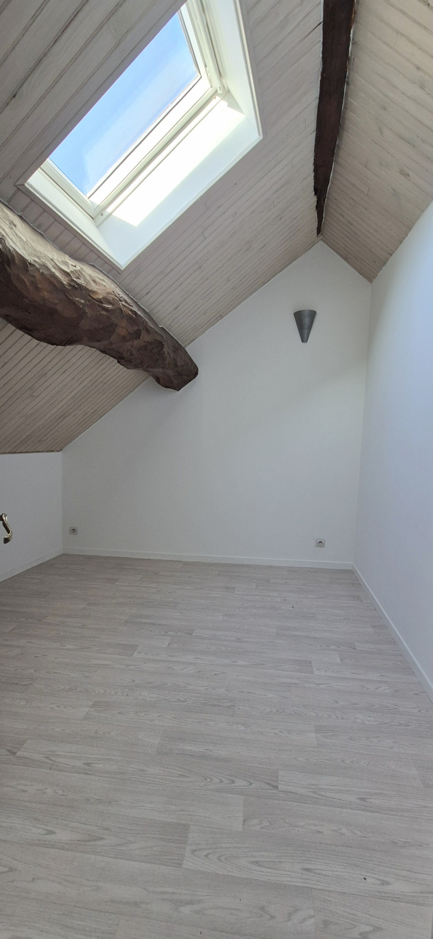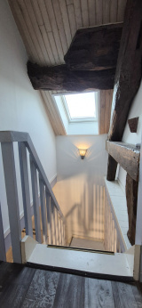 Au dernier niveau, le palier dessert deux chambres mansardées (10,20 m² et 12,40 m² au sol), une salle de bain ainsi qu’un toilette indépendant, l’ensemble est en très bon état général.