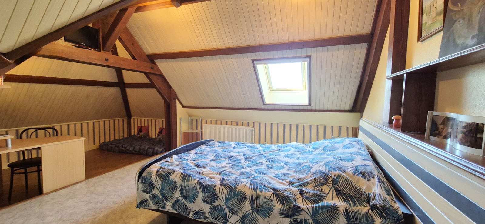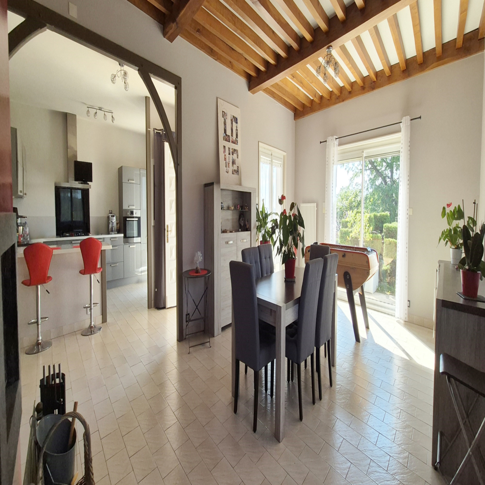 La maison est parfaitement entretenue : la toiture est de bonne qualité, les menuiseries ont été remplacées, des volets roulants électriques centralisés ont été ajoutés, et le système de chauffage est assuré par une pompe à chaleur air-eau, complété par une cheminée double face pour le plaisir d'une belle flambée.