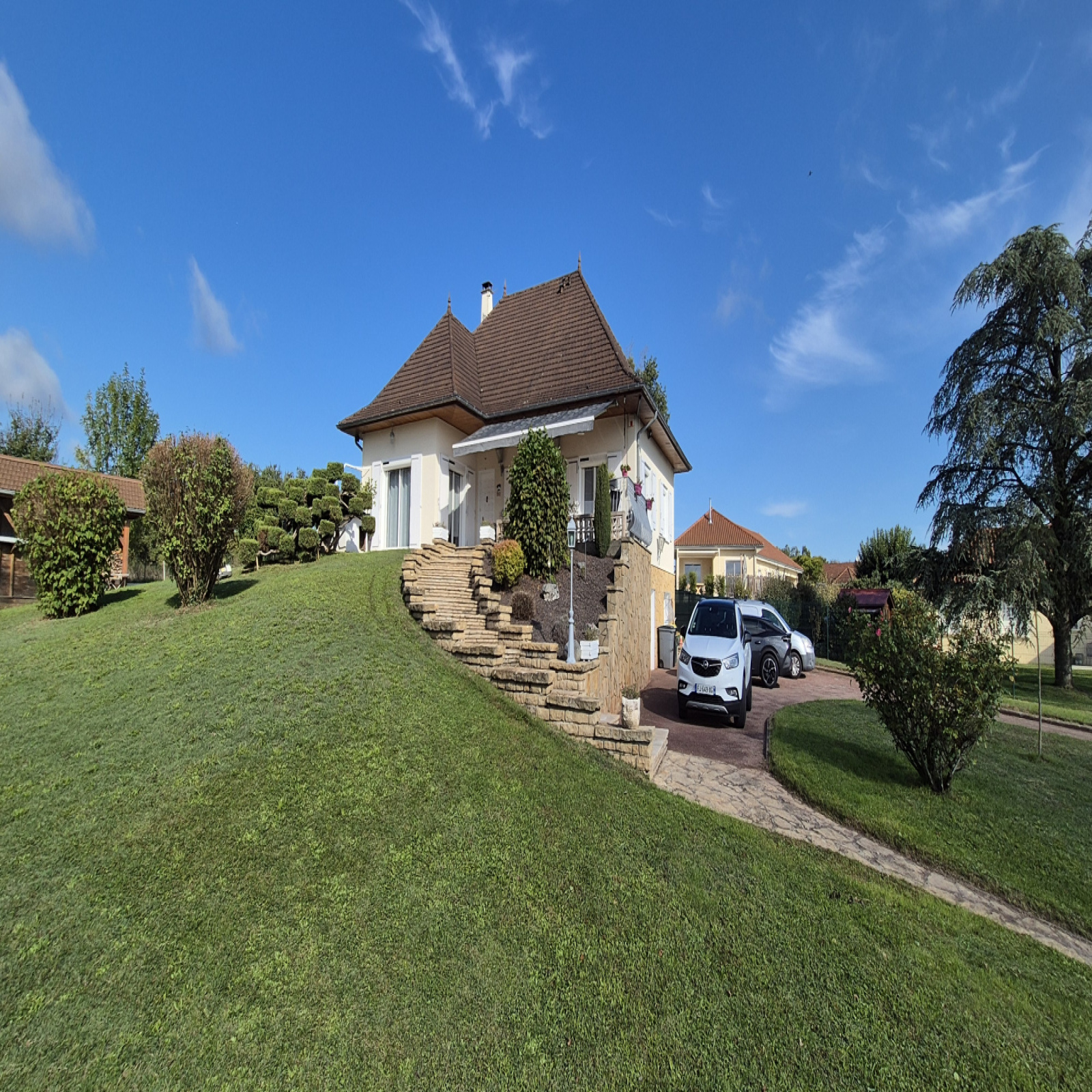 Venez découvrir cette belle et robuste maison de construction traditionnelle, d'une superficie de 138 m² habitables et 154 m2 au sol, édifiée sur un sous-sol de 114 m². Elle est implantée sur un magnifique parc clos et arboré de 2 652 m², entièrement constructible, offrant une vue extraordinaire sur les montagnes, la nature, la chapelle de Cozance et les tours du château de Serrière. Un panorama dont on ne se lasse pas, et qui change au fil des saisons.
