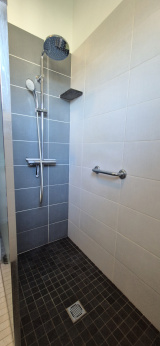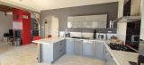 La maison se compose, au rez-de-chaussée, d'un espace de vie spacieux de 68 m² avec une cuisine ouverte entièrement équipée, donnant sur une terrasse de 64 m² avec vue sur le parc arboré et les montagnes. Vous y trouverez également deux chambres de 11 et 14 m², toutes deux bénéficiant d'une belle exposition, ainsi qu'une salle d'eau et un cabinet de toilette.