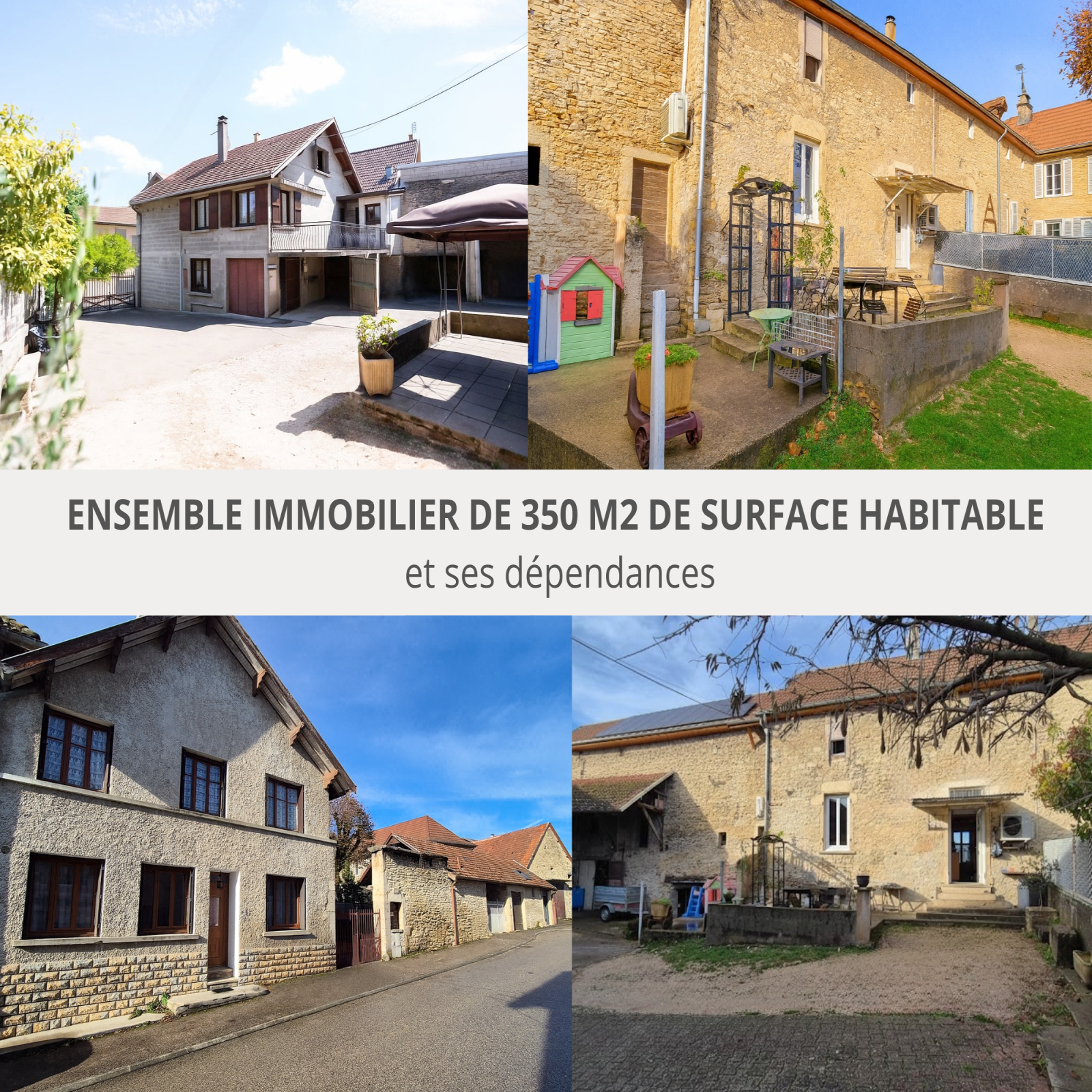 L’ensemble se compose de plusieurs bâtiments distincts représentant trois logements existants, complétés par d’importantes dépendances et surfaces exploitables.