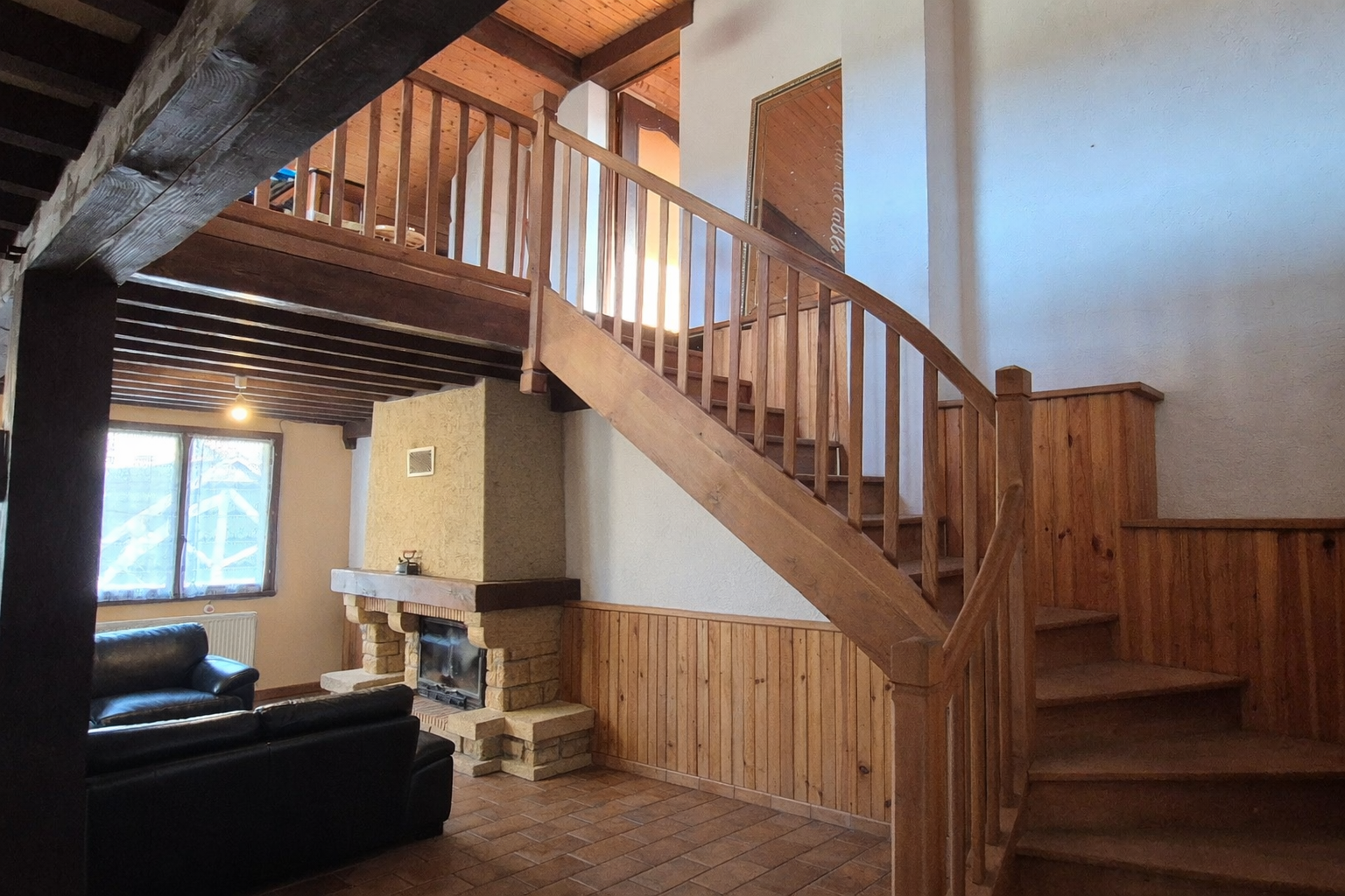 Second logement dans la même bâtisse :Pièce de vie de 50 m², coin cuisine de 8,55 m², salle de bain de 6,70 m², WC indépendant, chambre de 19 m² avec mezzanine de 28 m² avec fenêtre et vélux.