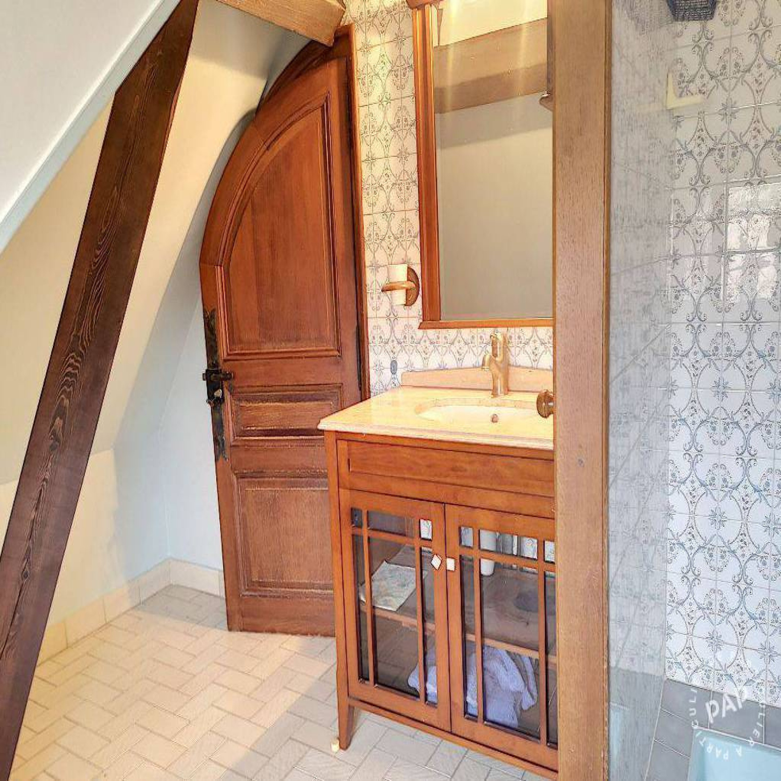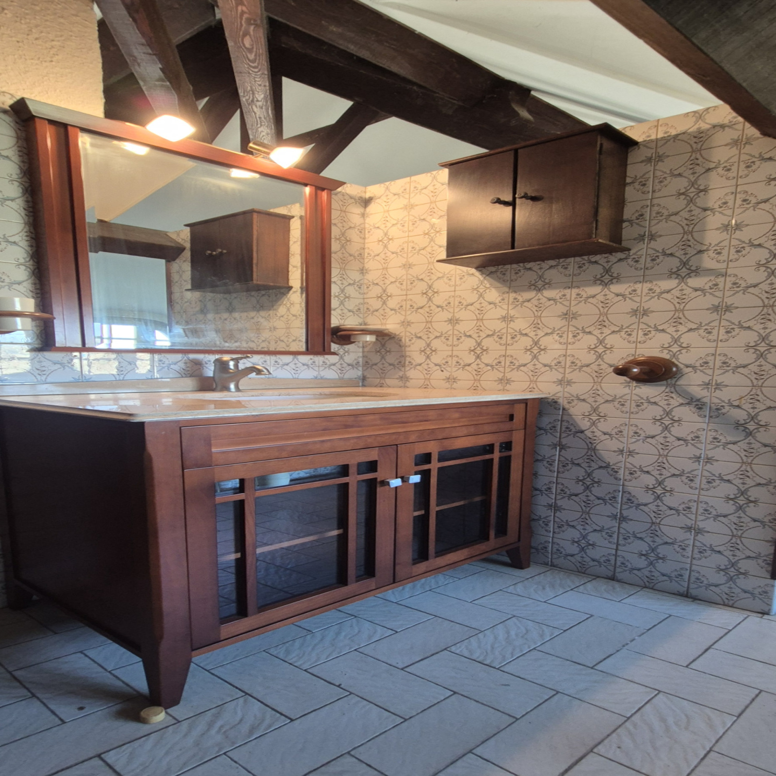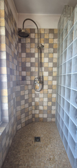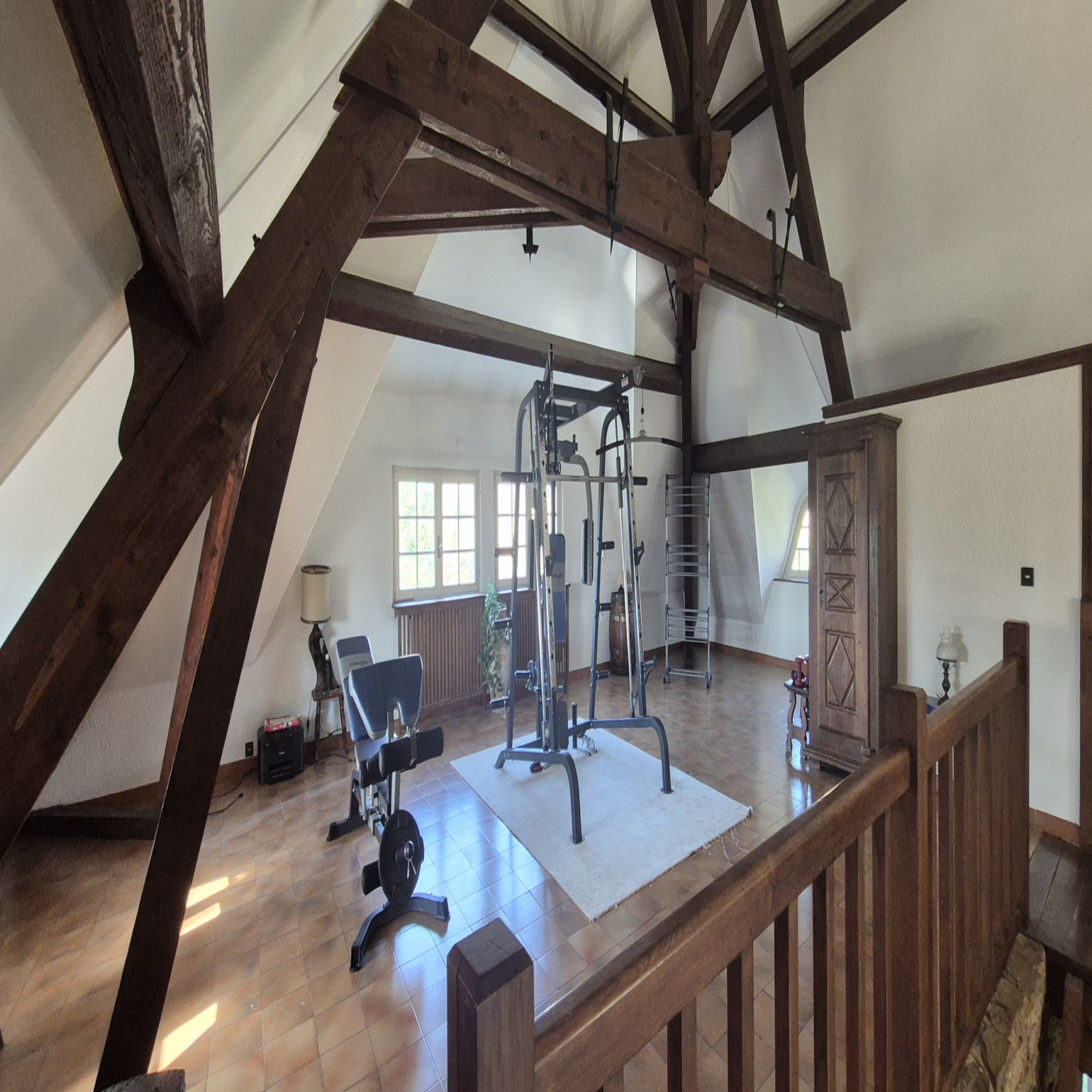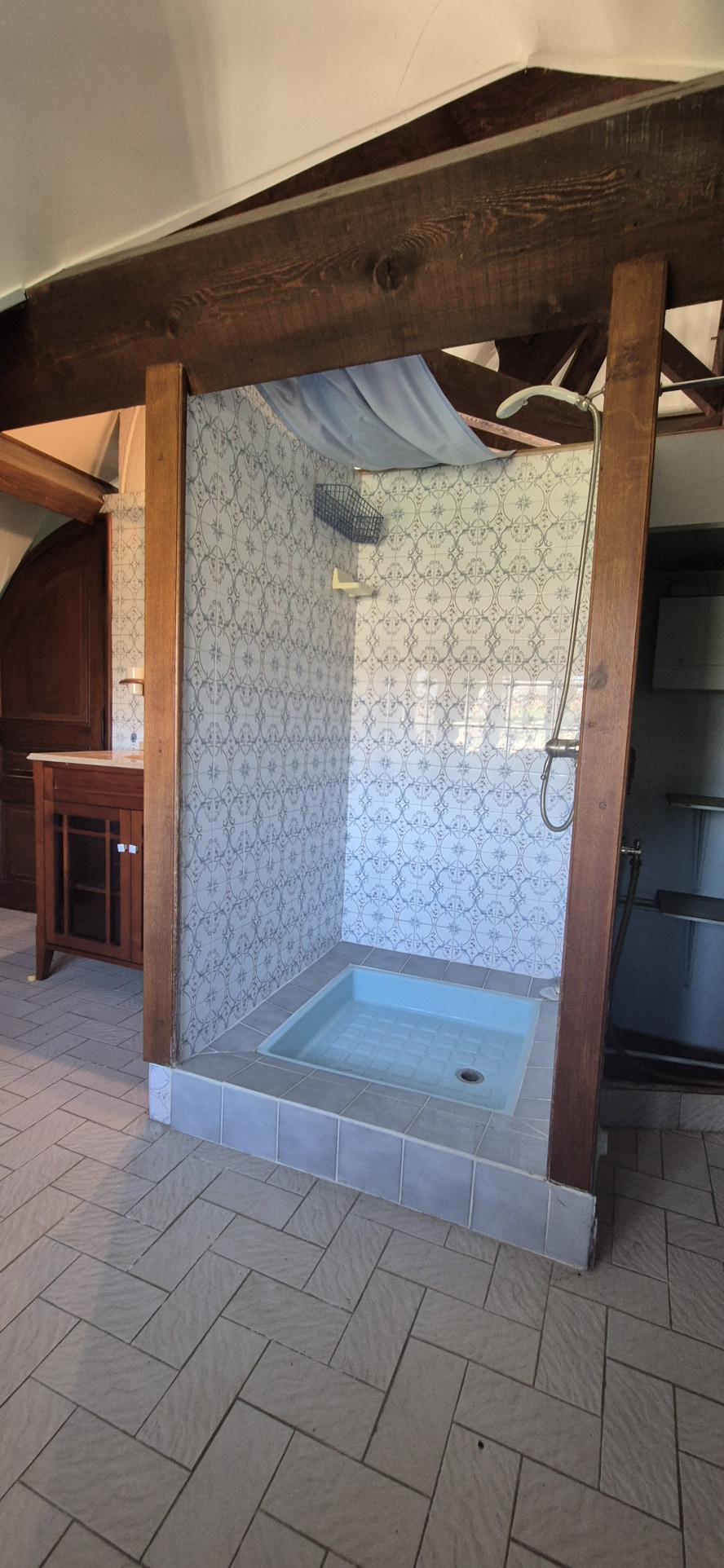 À l’étage, vous découvrirez un grand plateau de type mezzanine, actuellement ouvert sur le séjour avec une vue plongeante très agréable sur la pièce de vie. Cet espace offre 53 m² de surface au sol dont 40 m² habitables, permettant facilement la création de plusieurs chambres supplémentaires selon les besoins. Une salle d’eau de 6,30 m² avec douche et meuble vasque complète ce niveau.