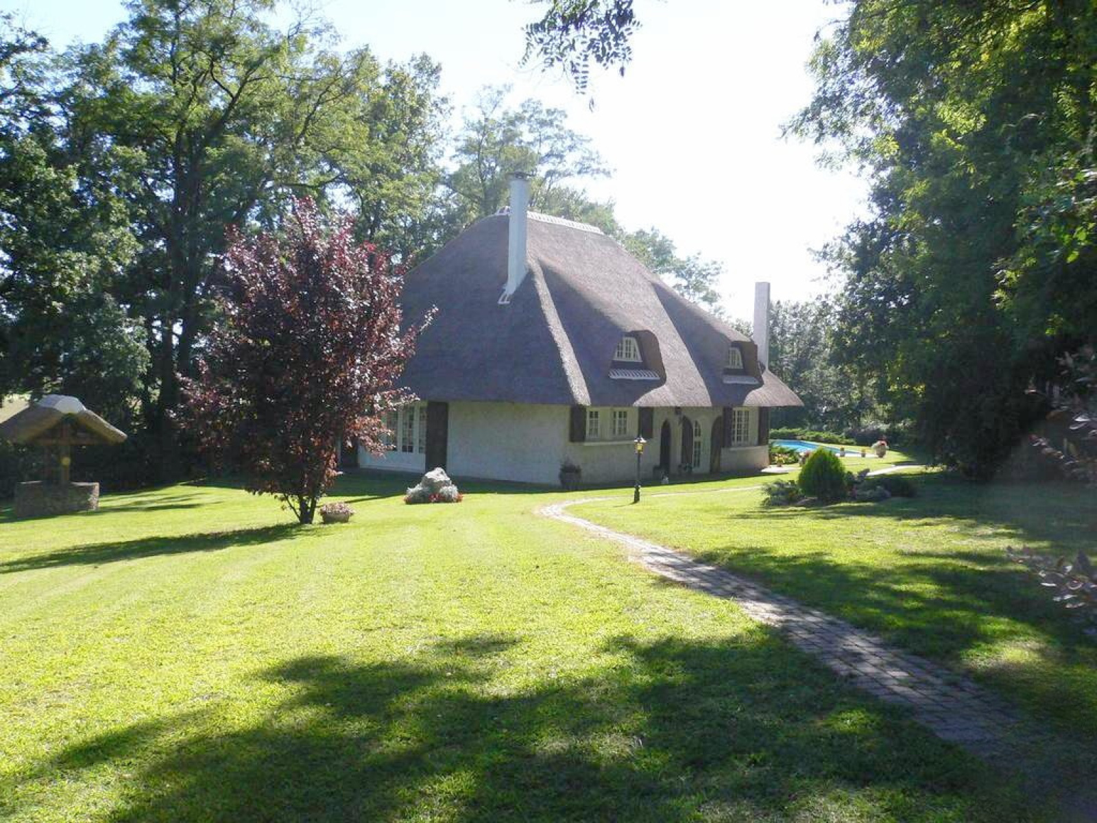La maison développe 175 m² habitables et repose sur un sous-sol complet de 133 m², offrant de nombreux espaces de rangement et de travail. Elle se distingue notamment par sa toiture en chaume, élément architectural plein de charme et relativement rare. Celle-ci a été révisée en 2008.
