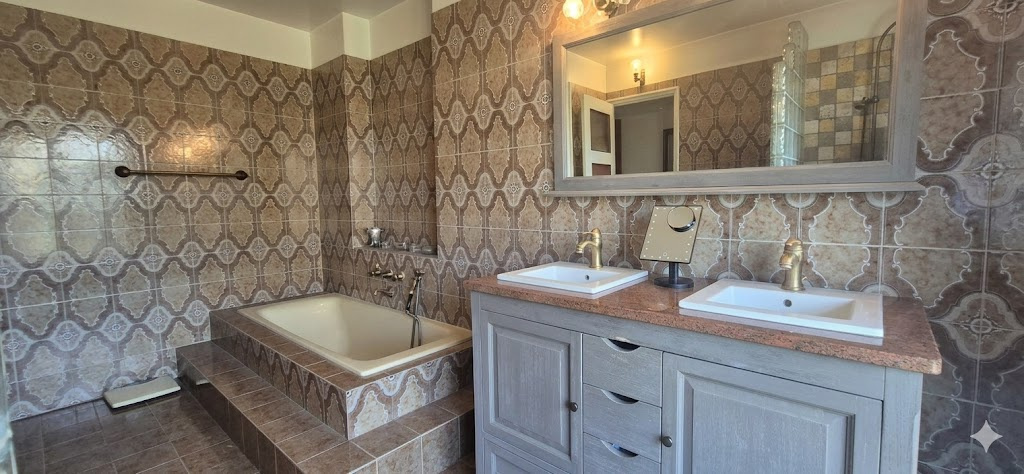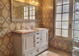 La partie nuit du rez-de-chaussée comprend également une chambre de 10,38 m², une spacieuse chambre parentale de 19,33 m², une salle de bain de plus de 10 m² équipée d’une baignoire, d’une douche et d’une double vasque, ainsi qu’un cabinet de toilette indépendant.