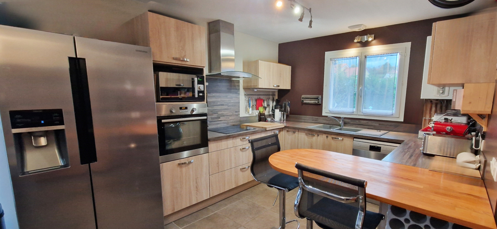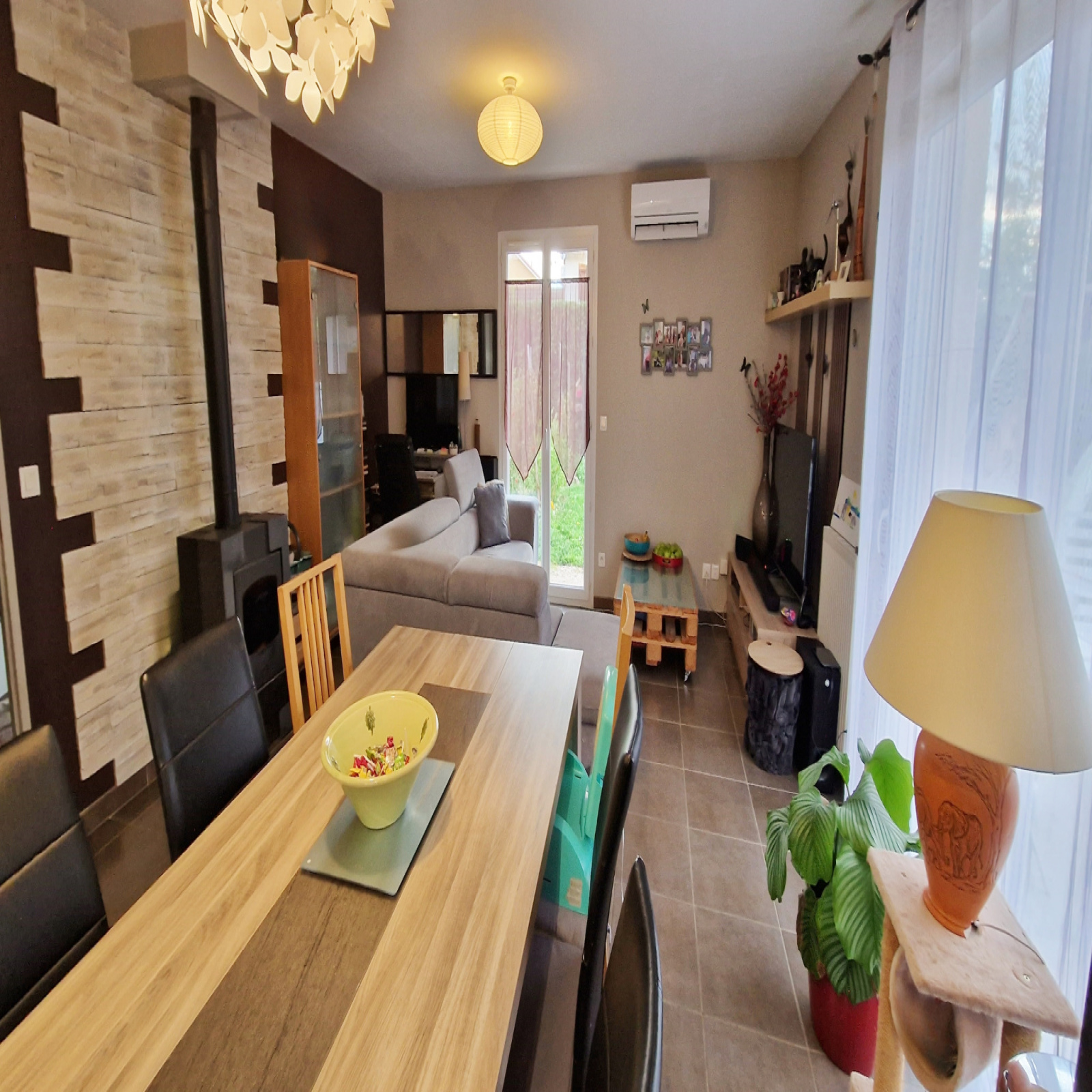 La maison bénéficie de plusieurs systèmes de chauffage, le principal étant un chauffage central par chaudière gaz fournissant également l'eau chaude, ainsi qu'un poêle à bois offrant un trés bon rendement et une pompe à chaleur air air reversible sur le séjour, idéale pour l'inter saison en mode chauffage ou pour les étés chauds en mode climatisation.