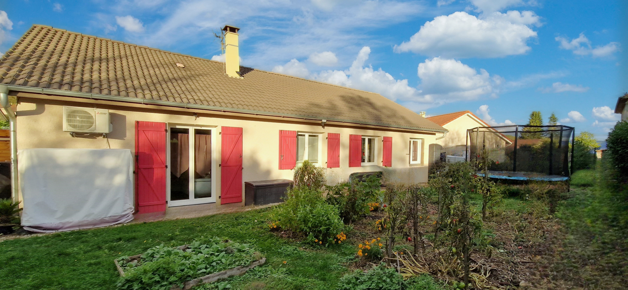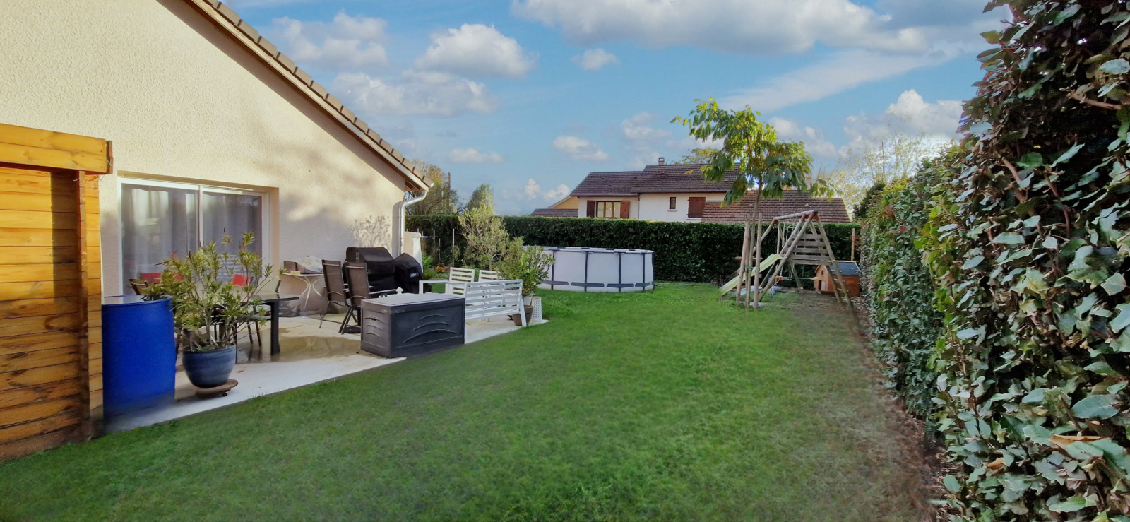 La maison est composée : d'une pièce de vie salon, séjour, cuisine équipée de 37 m2 donnant directement sur la terrasse, d'un bureau pouvant avoir usage de chambre d'appoint, de 4 chambres, de deux belles sallle d'eau avec douche italienne, et d'une buanderie.