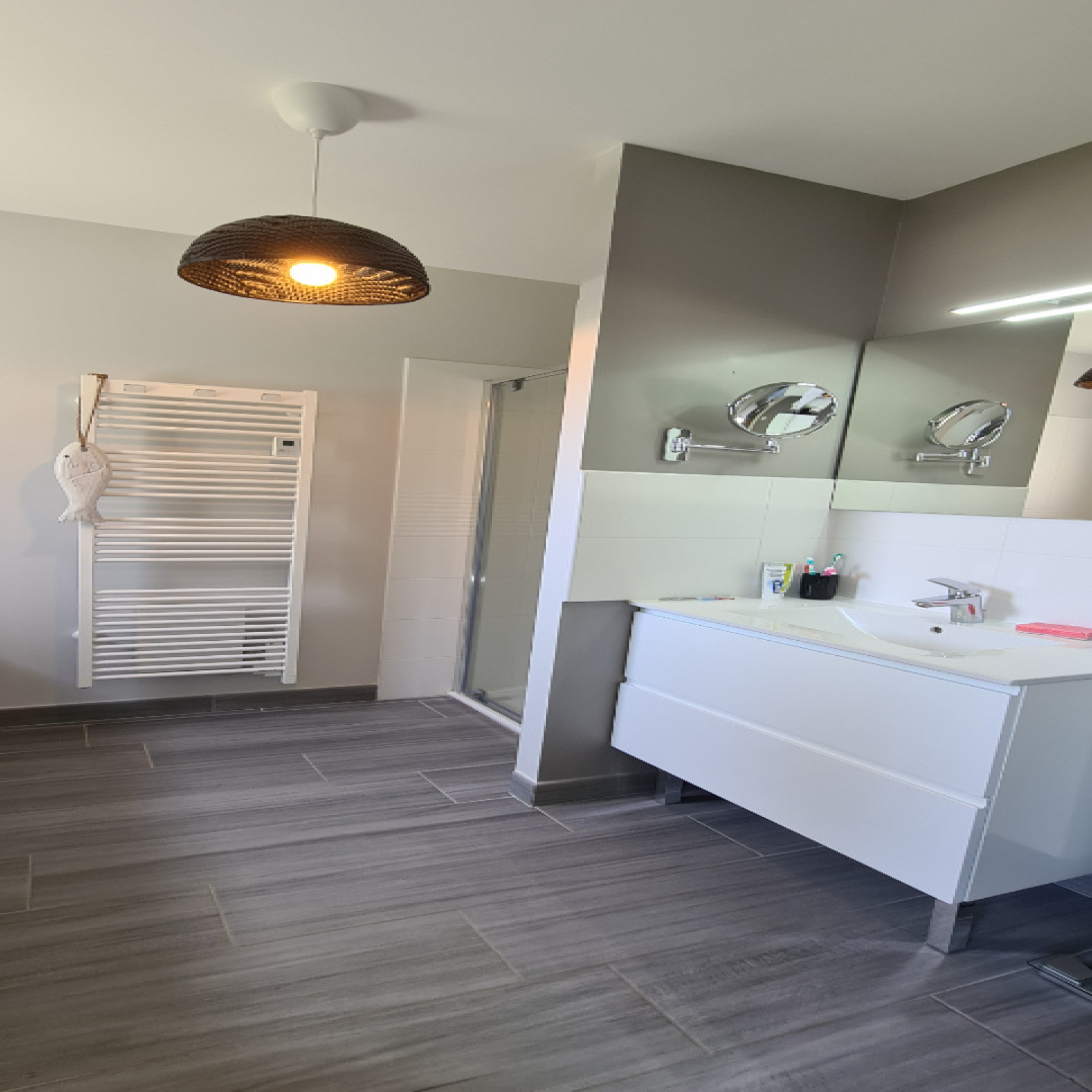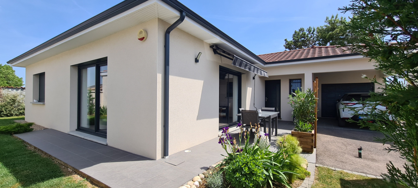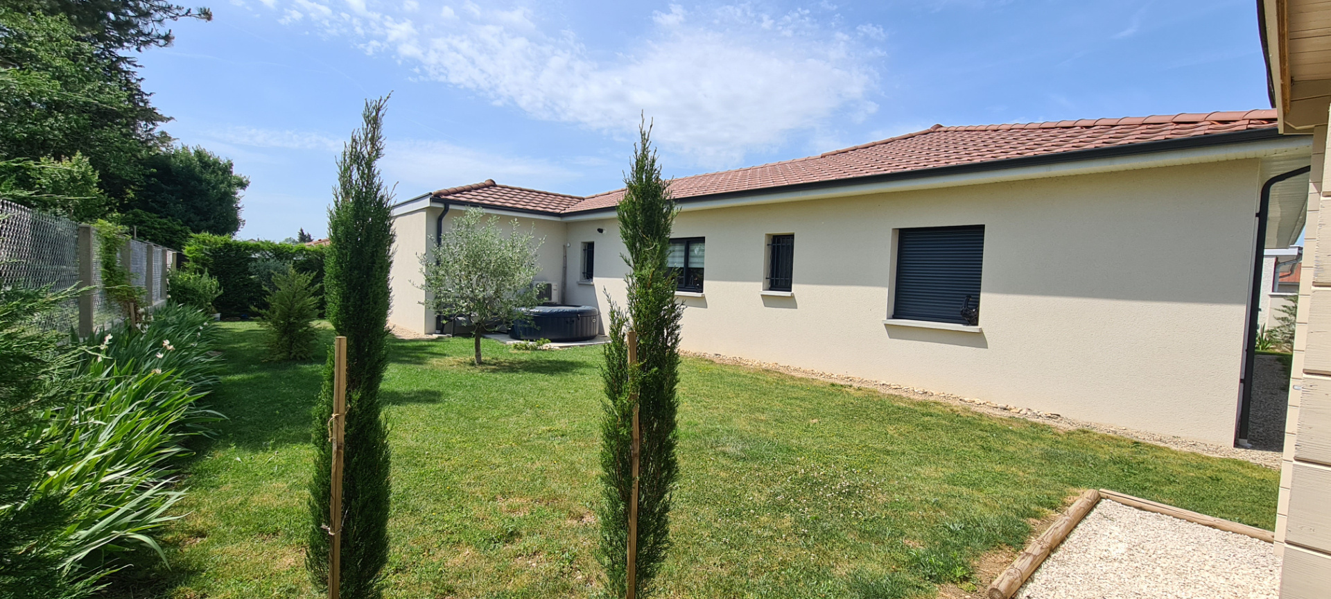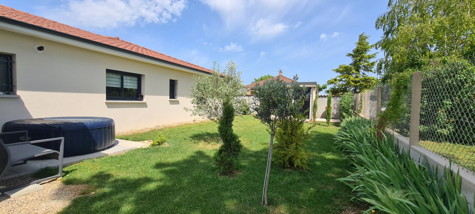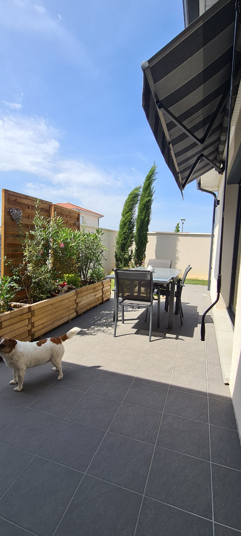 SOUS COMPROMIS ! Située dans la commune de Loyettes, à seulement 500m des commerces, des écoles, de l'arrêt de bus pour le collège et le lycée et 20 minutes de l'aéroport. Venez découvrir cette splendide maison construite en 2019 par la société de construction GANOVA, d'une superficie 126 m2 habitable avec garage motorisé de 17 m2 carrelé et isolé, une terrasse carrelée et une deuxième terrasse couverte également carrelé pouvant avoir usage d'abri de voiture, le tout implanté sur un terrain clos et arboré de 558 m2, agrémenté d'un abri de jardin. Vous serez ravis de découvrir un bien haut de gamme, avec un très bon niveau de finition et dont la composition est la suivante : Dès l'entrée, vous apprécierez la grande pièce de vie climatisée de 60 m2, composé d'un salon séjour de 47 m2 baignée de lumière grâce à ses deux grandes baies vitrées s'ouvrant sur le jardin et la terrasse et d'une cuisine de 13 m2 ouverte sur le séjour et exposée à l'est. Vous bénéficierez également d'un cellier buanderie de 6 m2 donnant accès au garage et d'un cabinet de toilette avec lave mains. Vous vous dirigerez ensuite vers 2 espaces nuit dont le premier est composé d'une suite chambre parentale de 26 m2, comprenant une chambre de 13m2, un dressing non aménagé de 7m2 et une magnifique salle de bains de 6 m2 équipée d'une baignoire et d'une douche à l'italienne. Le deuxième espace nuit est composé de deux chambres de plus ou moins 12 m2 chacune, agrémentées de placards intégrés et aménagés, ainsi que d'une salle d'eau de 7.20 m2 avec douche à l'italienne, commune aux deux chambres. Coté extérieur, cour en enrobé avec portail en aluminium non motorisé, avec les raccordements en attente. Le chauffage au sol est assuré par une chaudière alimentée au gaz de ville, avec 2 zones, jour et nuit . Il ne vous reste donc plus qu'une chose à faire, 06.23.01.26.33, pour un RDV de visite !