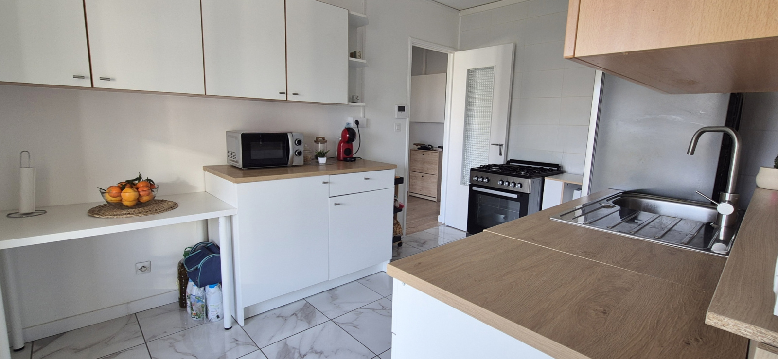 Cuisine indépendante de 10 m², avec accès direct au balcon terrasse de 8 m2.