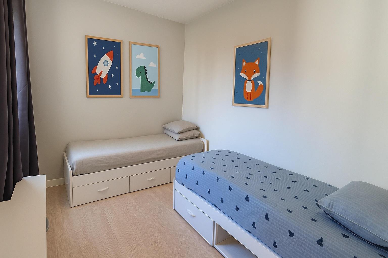 À l’origine configuré en T4 avec 3 chambres, le logement a été réaménagé en T3, permettant de bénéficier d’une pièce de vie confortable de 27 m². Une simple cloison permettra de recréer facilement la troisième chambre si besoin.