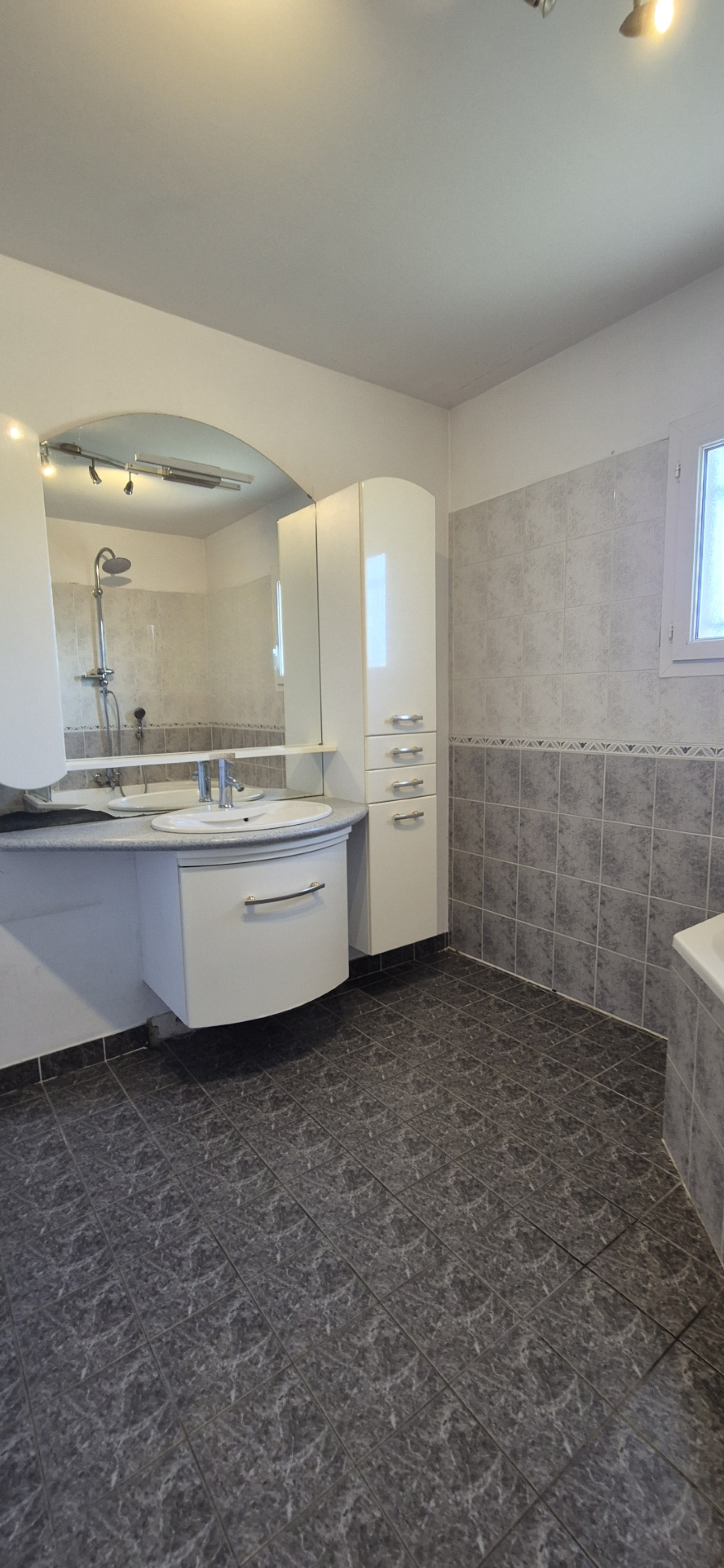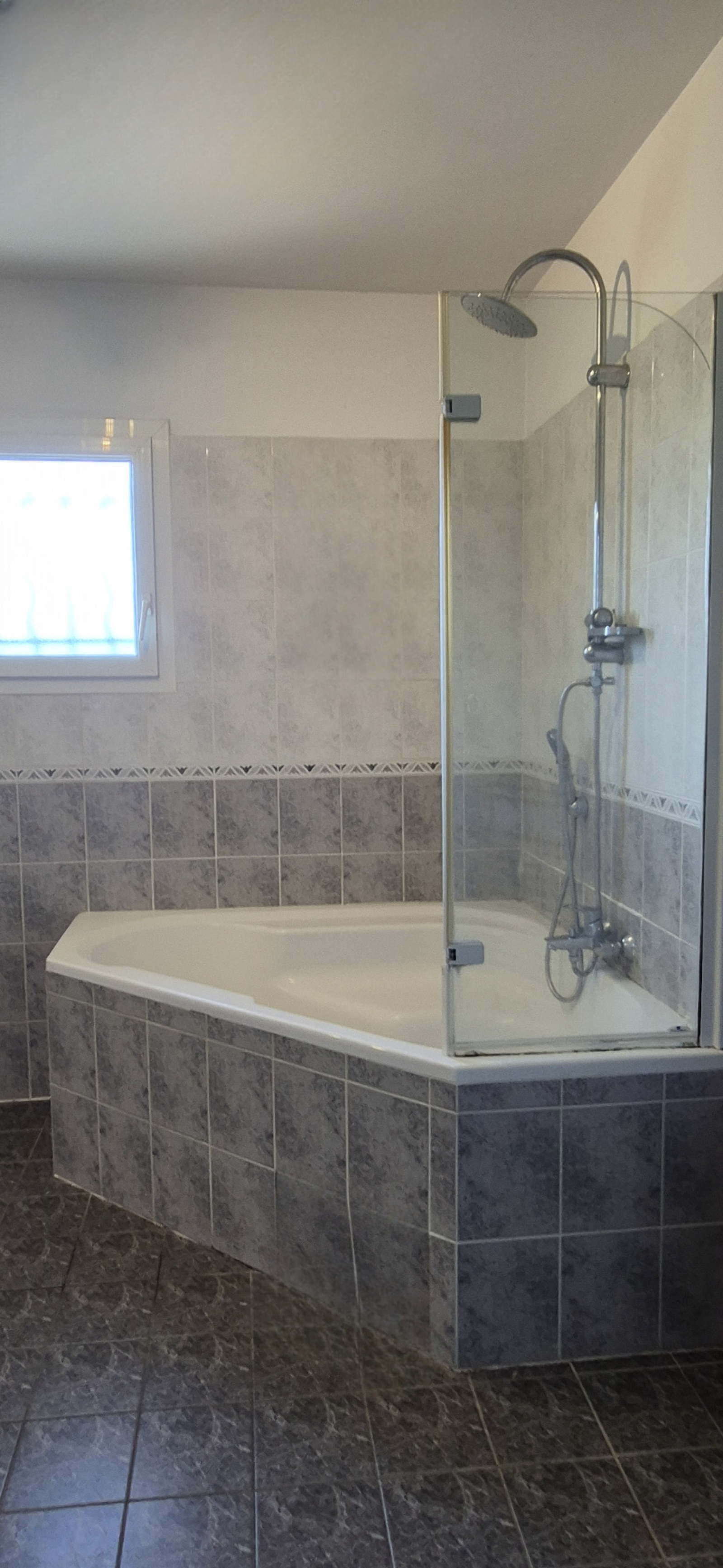 Au demi-niveau, vous trouverez un palier desservant 3 chambres de 11 à 14 m2, un cabinet de toilette séparé, une salle de bain avec baignoire, meuble vasque ainsi que la possibilité d'y ajouter une douche.