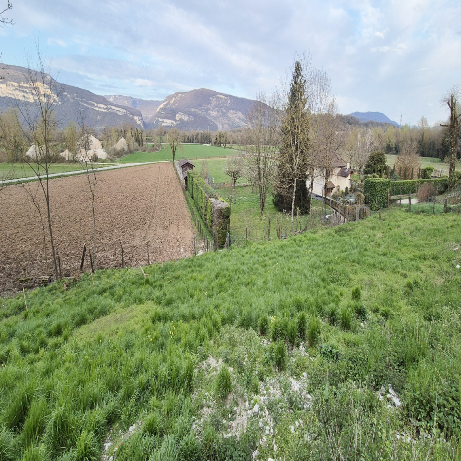 Le terrain est exposé sud-est et offre une vue dégagée sur la campagne et les coteaux du Bugey.