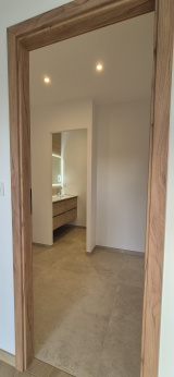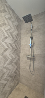 - Salle d’eau avec douche à l’italienne et meuble vasque