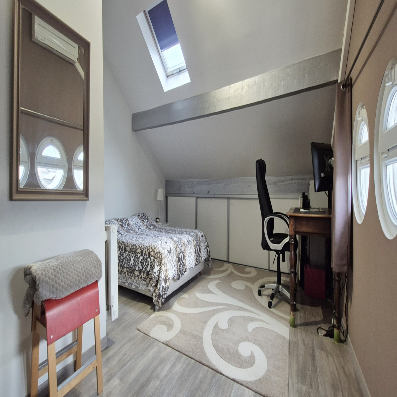 Le dernier niveau, aménagé sous combles, propose deux chambres, une salle d’eau avec WC et rangements.