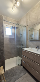 Une salle d’eau moderne avec douche à l’italienne et un WC indépendant complètent ce niveau.